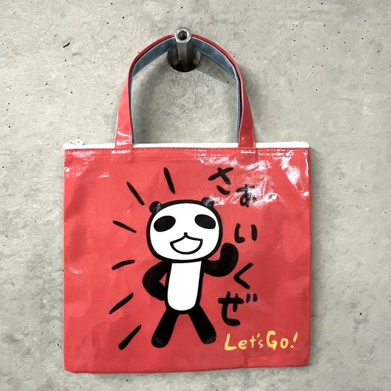 ビニールコーティングファスナー付きミニバッグ パンダさぁいくぜ