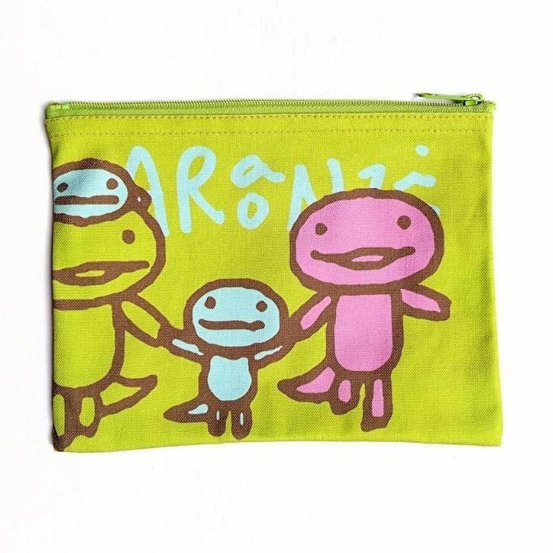 いろんな柄の帆布ポーチ とかげたちなかよし