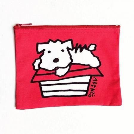 いろんな柄の帆布ポーチ 犬小屋の上のてつ