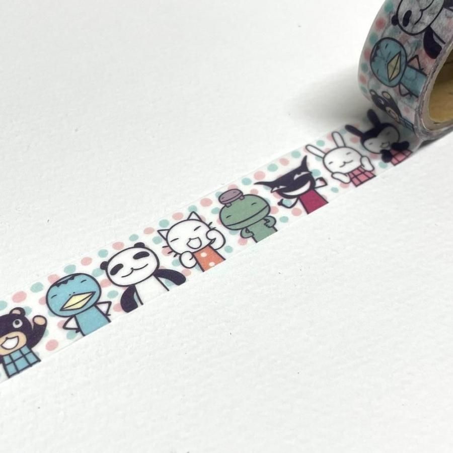 にぎやかで楽しい柄のマスキングテープです。いろんなところに使ってね!