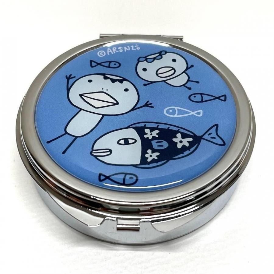 いろんな柄のミラー付き小物入れ カッパウオ水面