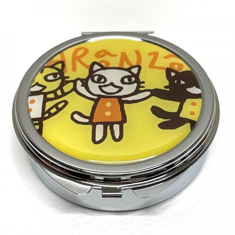 いろんな柄のミラー付き小物入れ ねこたちなかよし