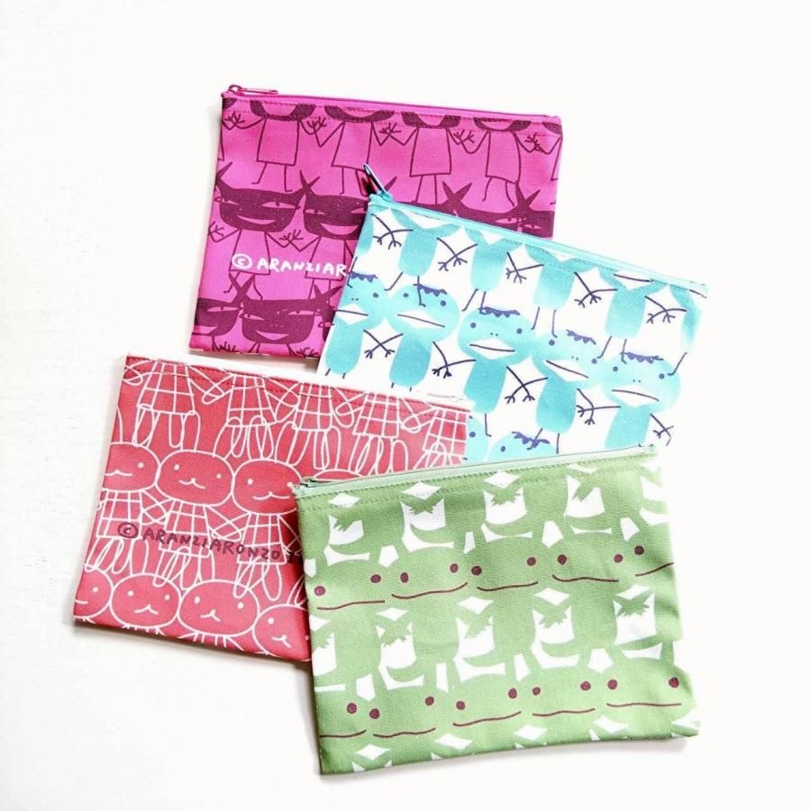いろんな柄の帆布バッグを作ったので、少しポーチも作っています。