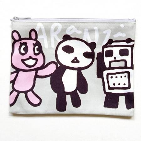いろんな柄の帆布ポーチ パンダたちなかよし