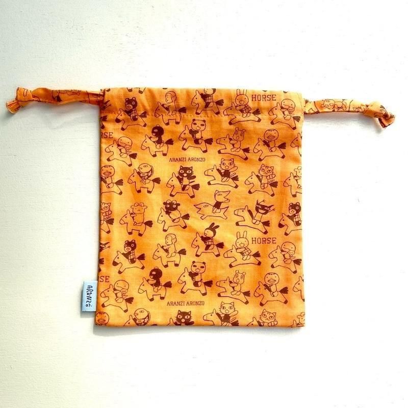 シーチング生地で作った巾着です。コットン100%の生地の巾着は、丈夫です。