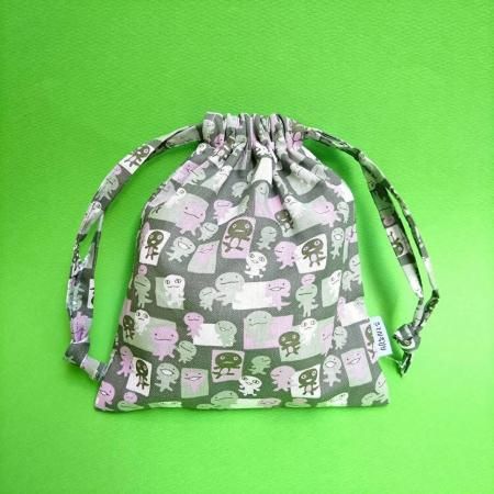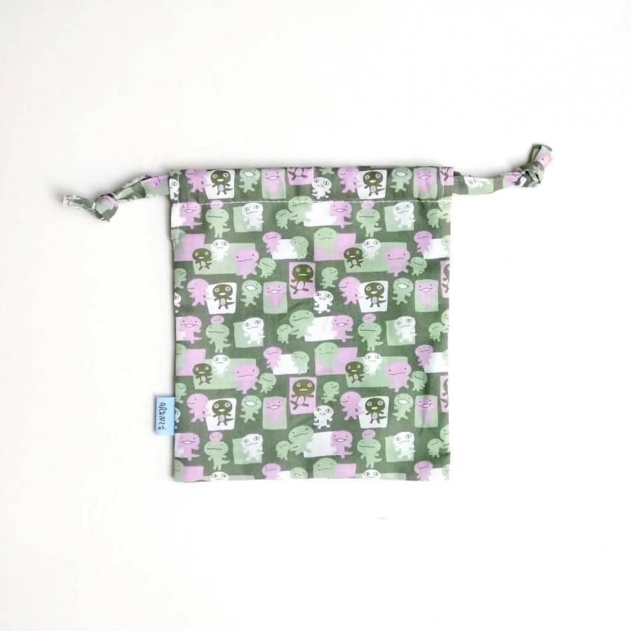 シーチング巾着Sサイズ トカゲとしかくグリーン