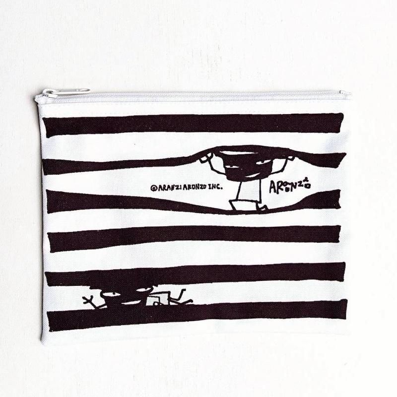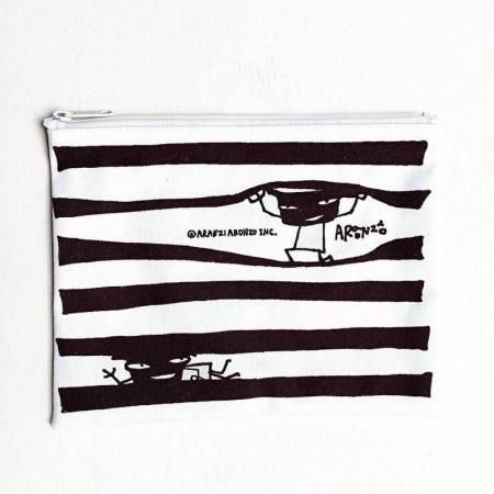 いろんな柄の帆布ポーチ わるものボーダー